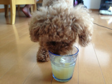 遊びにきたポーニーちゃん、ママのほうじ茶飲んでる(Sちゃんが、送ってくれたのにね。)