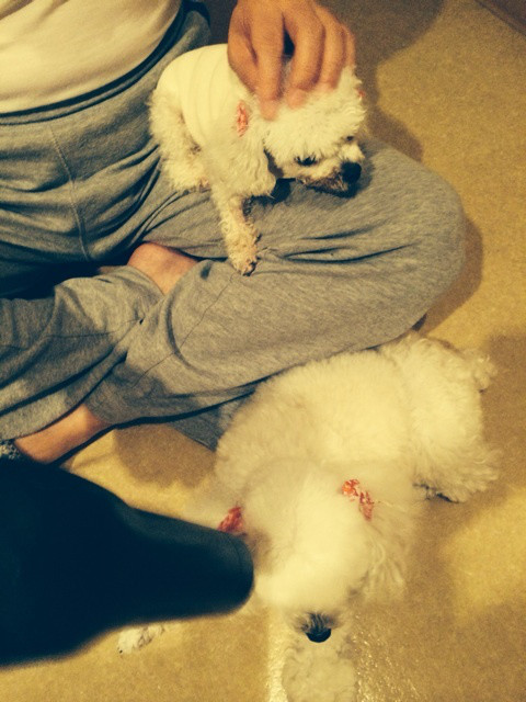 朝、おとうさんが、お風呂から上がったら、ドライヤーをかけてもらうワン!