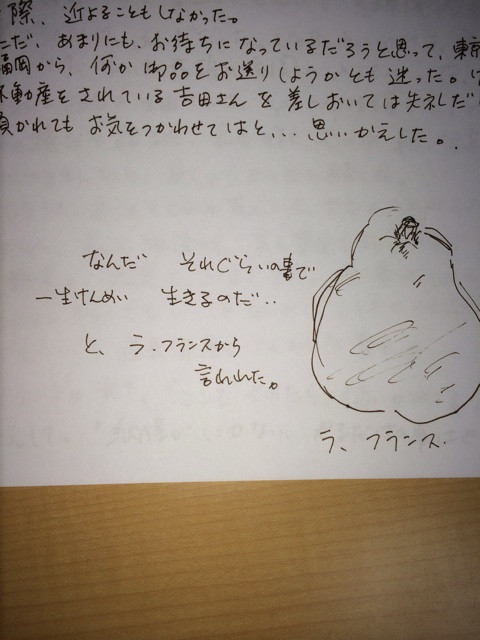 なんだ、それぐらいの事で 一生けんめい 生きるのだ、、と、ラ、フランスから言われた。