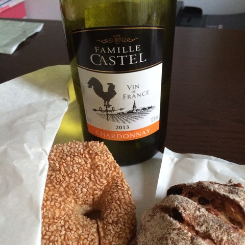 ブラジル、クロアチア戦を見ながら、一人で、ワインとパンを食べてます。