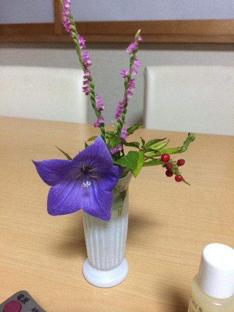 我が家に咲いた、桔梗と、捻じり水引、さんごしんじゅ、、、